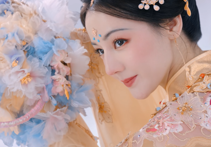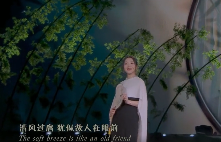 这不,中秋晚会上她就不“醺”了,身穿中式礼服,站在船上为观众们演唱国风歌曲《只字不提》。