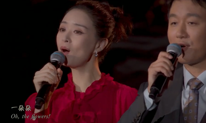 中秋晚会中,两人合作的曲目也很符合他们这个组合,节目名字是《月亮翻过小山坡》,唱出了游子们的思念家乡的情感。