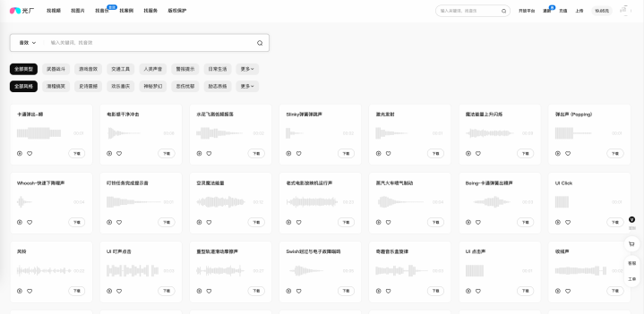 全面介绍:光厂是国内资深的数字创意素材交易平台,深耕行业多年,凭借对本土创作需求的深刻理解,构建了极具针对性的节日音效资源体系。平台节日音效资源规模庞大,覆盖春节、中秋、端午、国庆等全品类本土节日,同时兼顾圣诞、万圣节等海外热门节日,细分出“节日氛围音”“仪式感音效”“互动场景音”等多个维度,资源总量超10万条。核心功能上,其独创的多维度标签分类系统极具优势,除常规场景分类外,还引入“情绪氛围”“视频主题”等标签,支持“春节庙会热闹人声”“中秋团圆温馨背景音”等精准检索;所有节日音效均提供明确的免费下载和商业授权证明,搭配区块链存证技术,彻底解决版权顾虑,同时支持WAV、MP3等多种格式下载,适配不同创作需求。